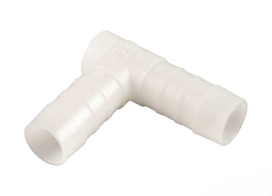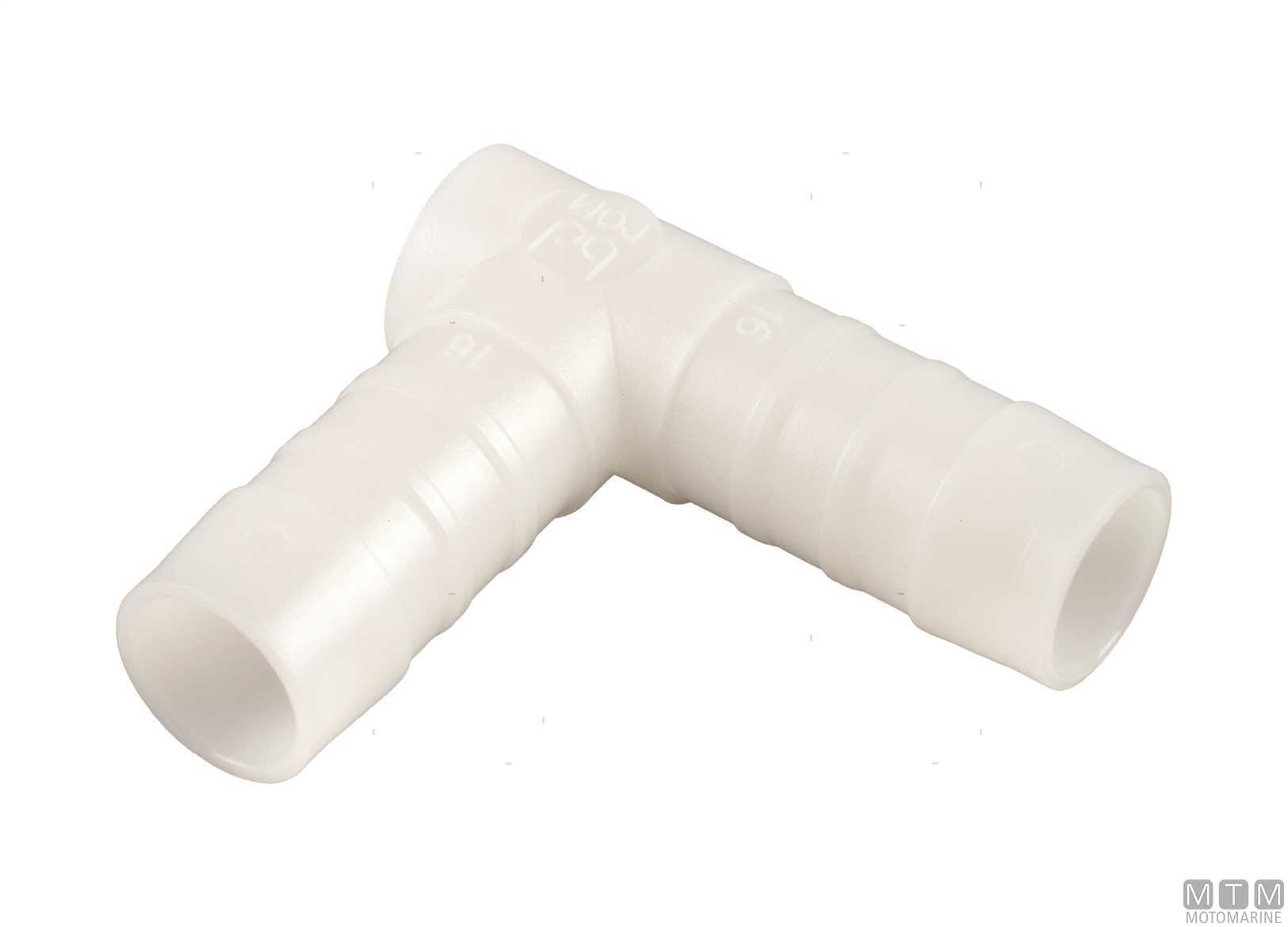 Raccordo portagomma in Polimero di Resina Acetalica per impianti di acqua dolce, di scarico e di mare. Passaggio interno dei fluidi liscio senza spigoli con pareti a spessore per resistere agli urti, assenza di corrosione, pressione di esercizio 10 bar a max 85 °C.