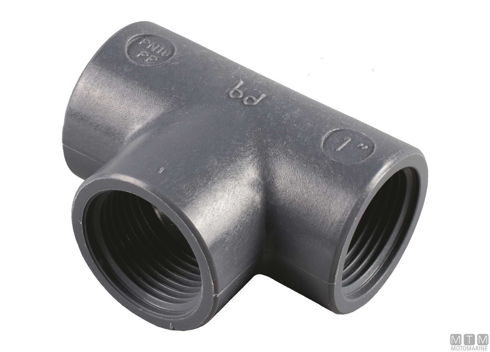 Raccordo a T in Polipropilene composito caricato con fibre di vetro. Tenuta superiore del filetto e della pressione, resistente all'abrasione, all'usura, esente da corrosione chimica e galvanica. Idoneo per passaggio acqua dolce a norma CE 10/2011 e DM174/2004. Pressione di esercizio 10 bar a max 100°C.