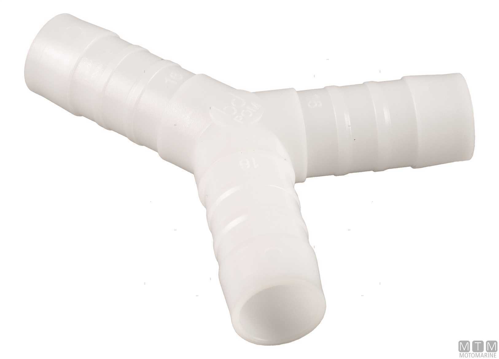 Raccordo portagomma in Polimero di Resina Acetalica per impianti di acqua dolce, di scarico e di mare. Passaggio interno dei fluidi liscio senza spigoli con pareti a spessore per resistere agli urti, assenza di corrosione, pressione di esercizio 10 bar a max 85 °C.