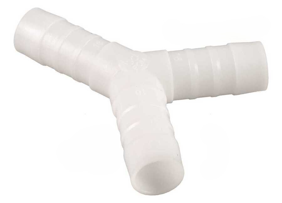 Raccordo portagomma in Polimero di Resina Acetalica per impianti di acqua dolce, di scarico e di mare. Passaggio interno dei fluidi liscio senza spigoli con pareti a spessore per resistere agli urti, assenza di corrosione, pressione di esercizio 10 bar a max 85 °C.