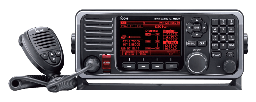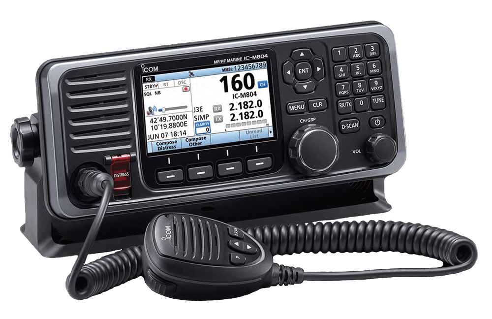 L’ICOM IC-M804E è una radio MF/HF SSB progettata per garantire comunicazioni affidabili e di alta qualità anche nelle condizioni marine più estreme. Costruita secondo i più elevati standard costruttivi, rappresenta una soluzione ideale per imbarcazioni da diporto e unità professionali che richiedono prestazioni elevate, robustezza e massima sicurezza operativa. L’apparato è dotato di un ampio display LCD TFT a colori da 4,3” ad alta luminosità, che assicura una lettura chiara e precisa di testi e icone. La modalità “Night Mode” offre una visione confortevole e priva di abbagli anche nelle ore notturne. L’interfaccia utente intuitiva, i tasti direzionali e funzione retroilluminati e la tastiera alfanumerica completa rendono l’utilizzo semplice e immediato, consentendo un rapido accesso a tutte le impostazioni e funzioni operative. È possibile memorizzare fino a 100 codici MMSI, ognuno con un nominativo ID fino a 10 caratteri, per una gestione efficace dei contatti. Il ricevitore DSC in Classe E, indipendente dal ricevitore principale, effettua un monitoraggio continuo dei sei canali di soccorso, garantendo un livello di sicurezza elevato durante la navigazione.L’audio è chiaro e potente grazie all’altoparlante frontale di ultima generazione, mentre la potenza di trasmissione di 125 W assicura comunicazioni stabili e precise anche su lunghe distanze. Progettato per resistere agli ambienti marini più severi, l’IC-M804E presenta una protezione IPX7 contro l’acqua e un ampio range operativo da -20°C a +55°C. In abbinamento con l’accordatore automatico d’antenna AT-141, questo apparato offre prestazioni superiori, affidabilità e qualità di trasmissione ottimale, rendendolo una scelta eccellente per chi desidera il massimo della tecnologia radio HF marittima.