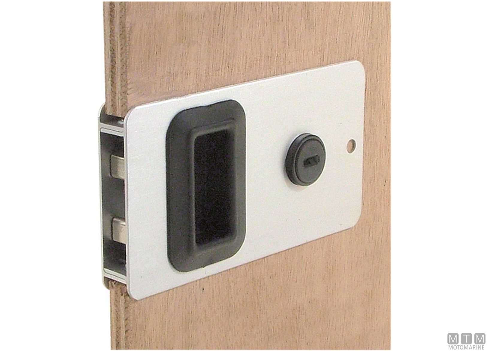 Serratura a filo in Alluminio Anodizzato per porte scorrevoli, anche per quelle a scomparsa (10-15 cm di accostamento in più rispetto alle altre serrature).Completa di chiavi e sblocco di sicurezza interno per non rimanere bloccati in cabina.Spessore porta 12.5 mm o 10 mm con riduttore opzionale.Mano universale DX/SX.