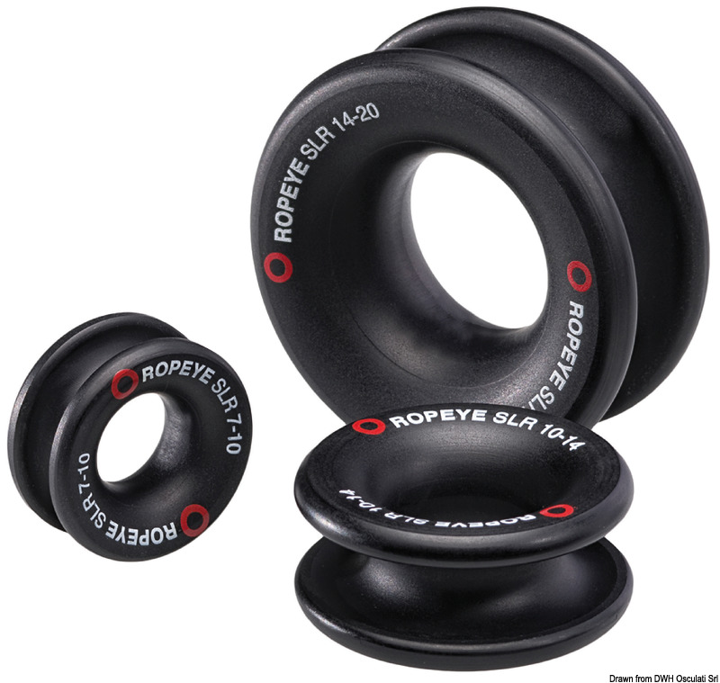 Ropeye Self-Locking Rings, anelli a bassa frizione per molteplici usi interni ed esterni. Realizzati in alluminio anodizzato, sono appositamente progettati per mantenere il regolare scorrimento di cime, scotte, drizze all'interno del canale dell'anello.