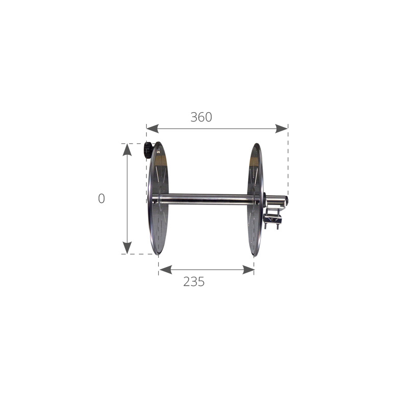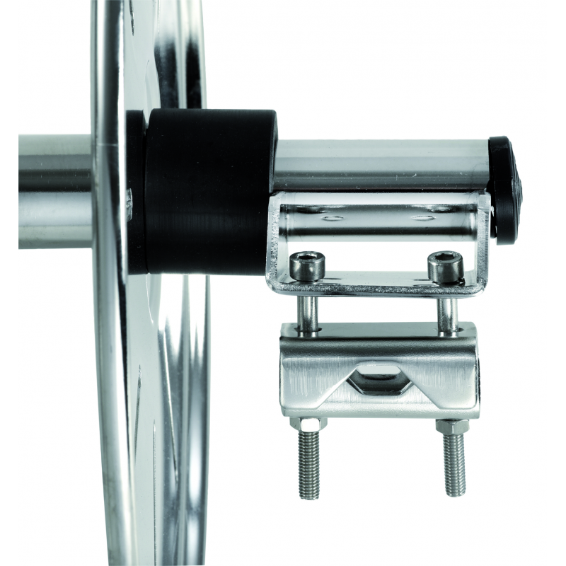 Rullo avvolgi cima in acciaio inox. Provvisto di frizione regolabile e maniglia smontabile. Fissaggio universale con morsetti inox per tubi Ø mm. 25-28. Capacità tamburo circa mt. 120 cima Ø mm. 8. Dim. mm. A= Ø 270 lung. mm 360 x h. mm 240
