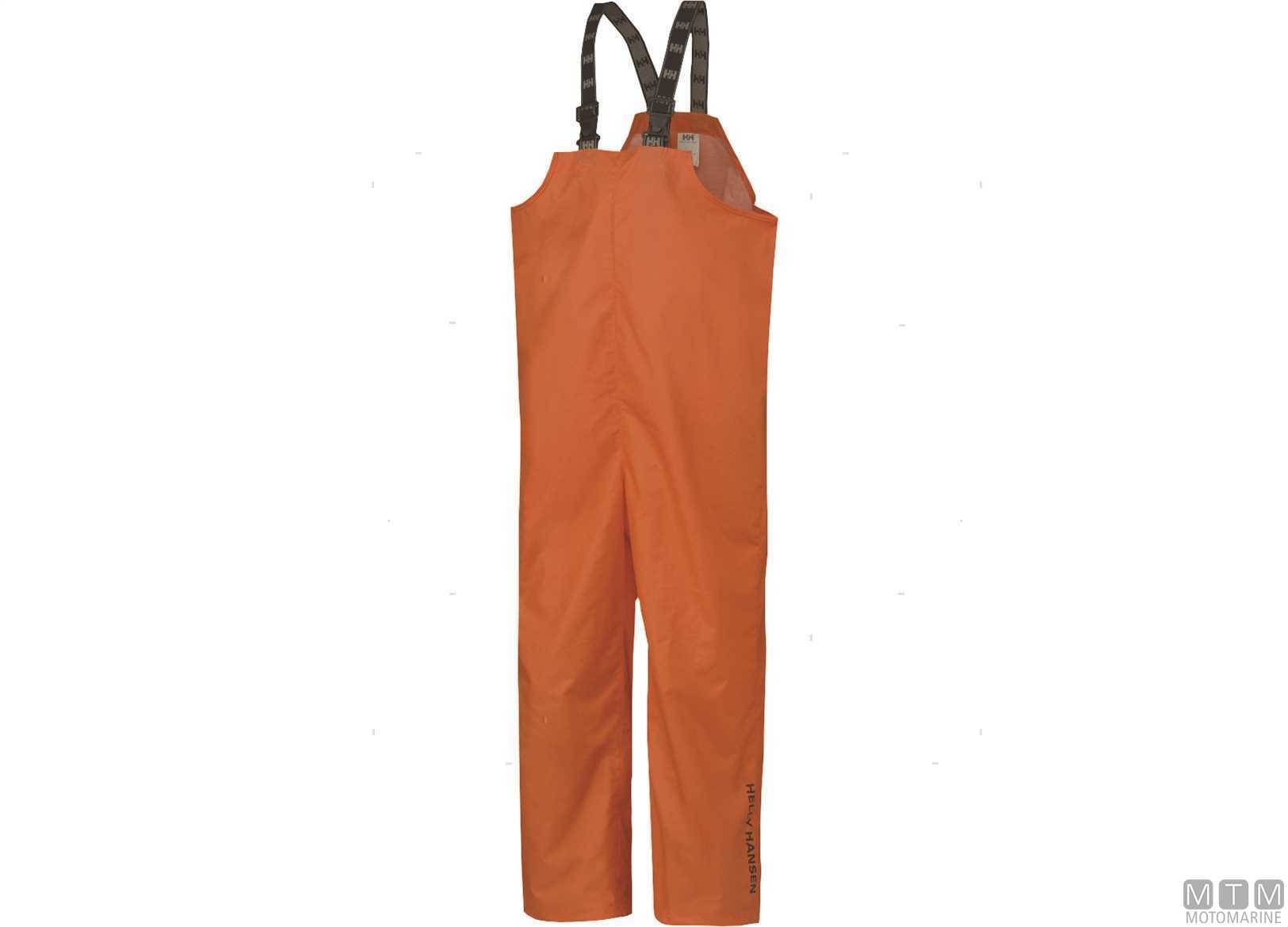 Salopette Helly Hansen Mandal Bib in tessuto di Poliestere 410 g/m2 spalmato di PU ideale per proteggersi dall'acqua durante la pesca o in qualsiasi attività a bordo e in banchina. ↵Con tasca frontale interna con zip, bretelle elastiche regolabili e bordo inferiore regolabile con bottoni.