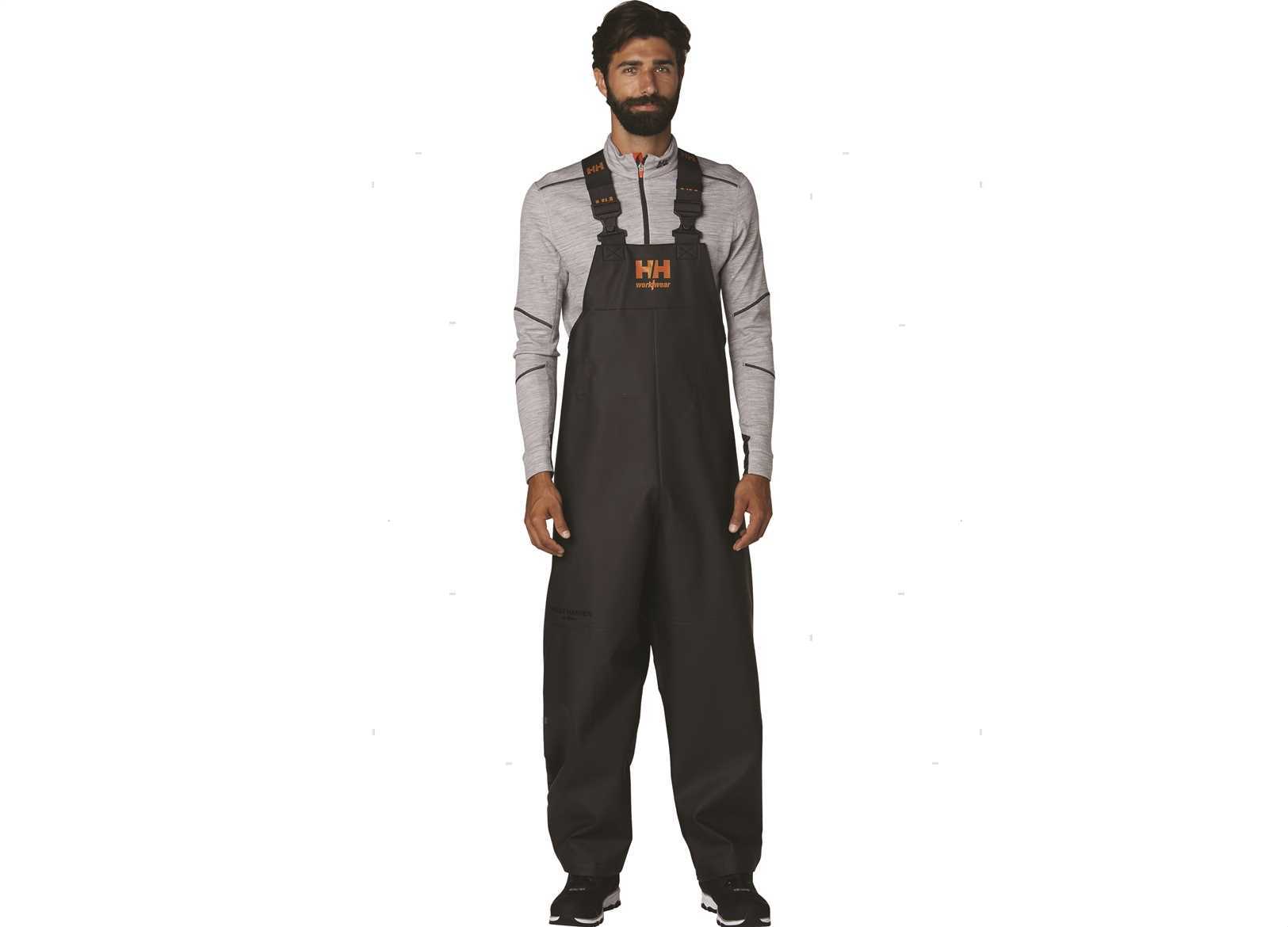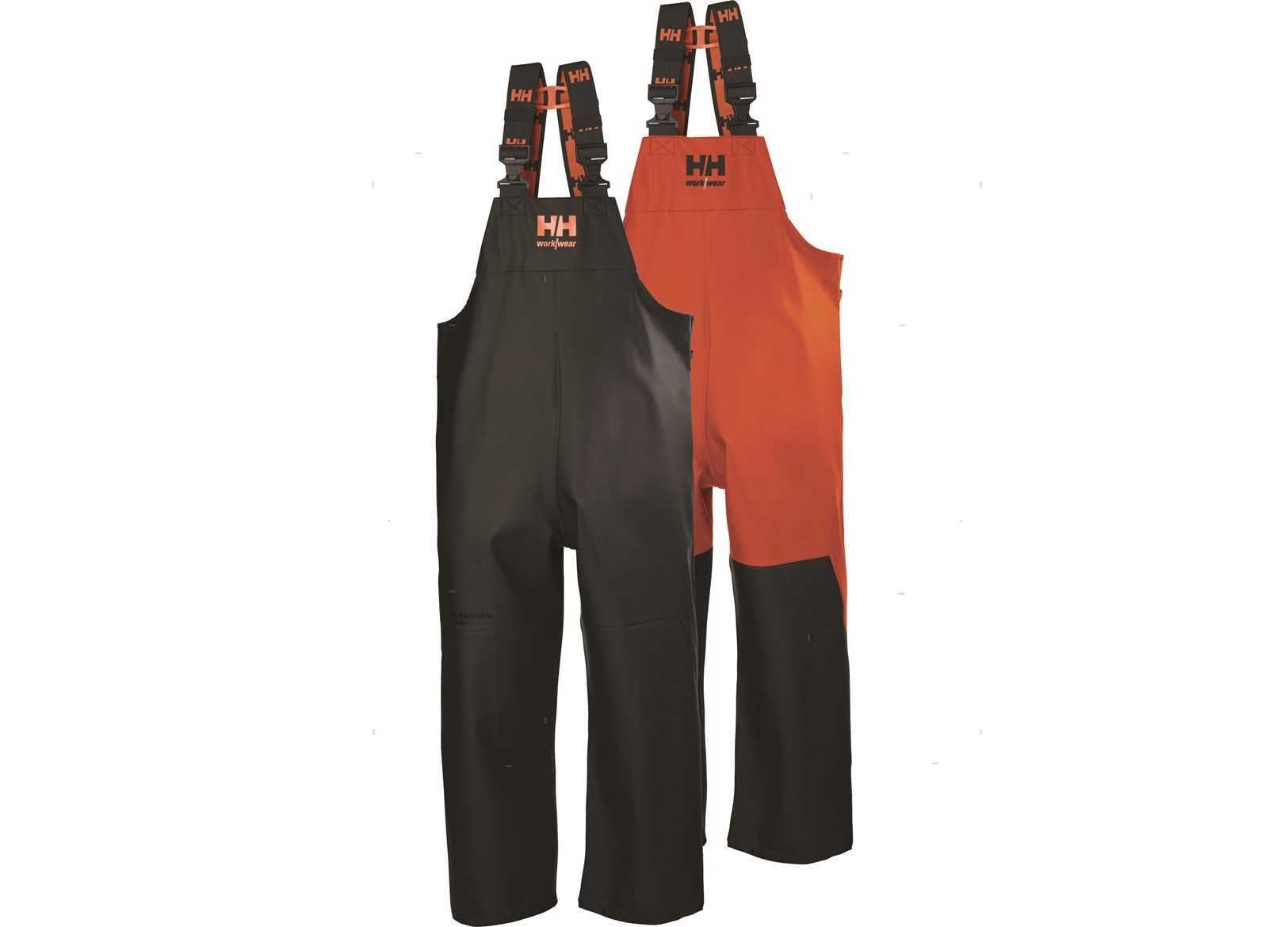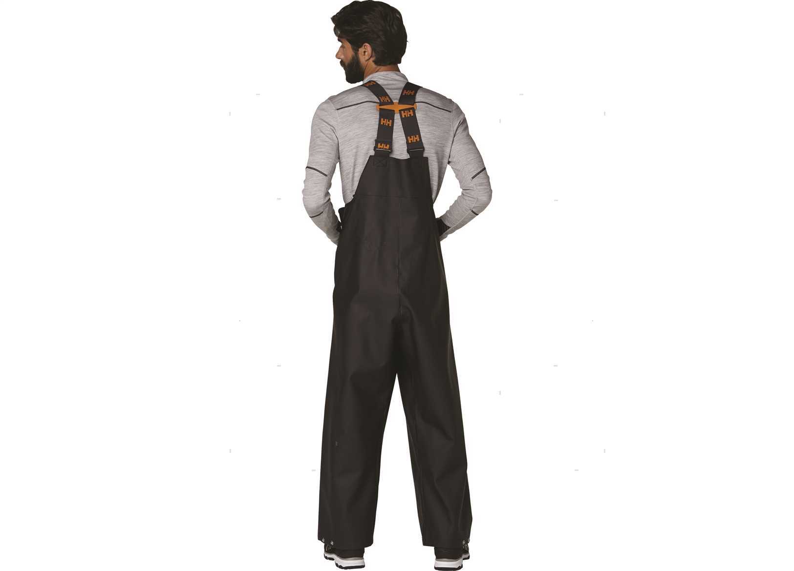 Salopette Helly Hansen Storm Rain Bib in tessuto di Poliestere 310 g/m2 spalmato di PVC ideale per proteggersi dall'acqua durante la pesca o in qualsiasi attività a bordo e in banchina. Con tasca frontale interna con zip e bretelle elastiche.