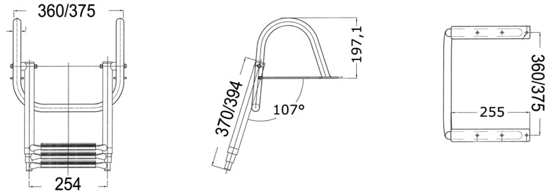 Scaletta pieghevole,Inox 316,per plancia stretta,gradini 2+3 ,180⁰