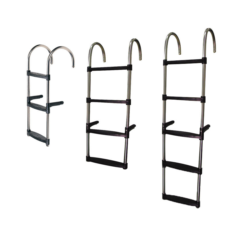 Made of 25mm marine grade stainless steel tubing, with black non-slip plastic steps. Ladders come complete with stand offs and one pair of keyhole plates with backing pads, and is suitable for most hulls hooks fold flat for out of the way storage.