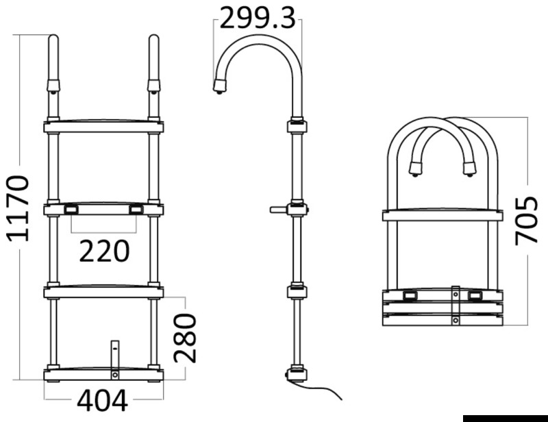 Scaletta con Plancetta, 1+2 gradini, Inox 316, 276x740mm, ø22mm