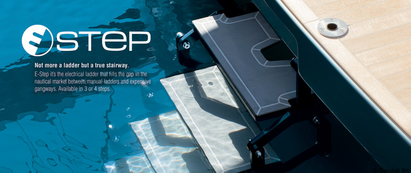 Il primo gradino della scaletta è progettato per sporgersi in avanti, consentendo di installarla arretratamente rispetto allo specchio di poppa.