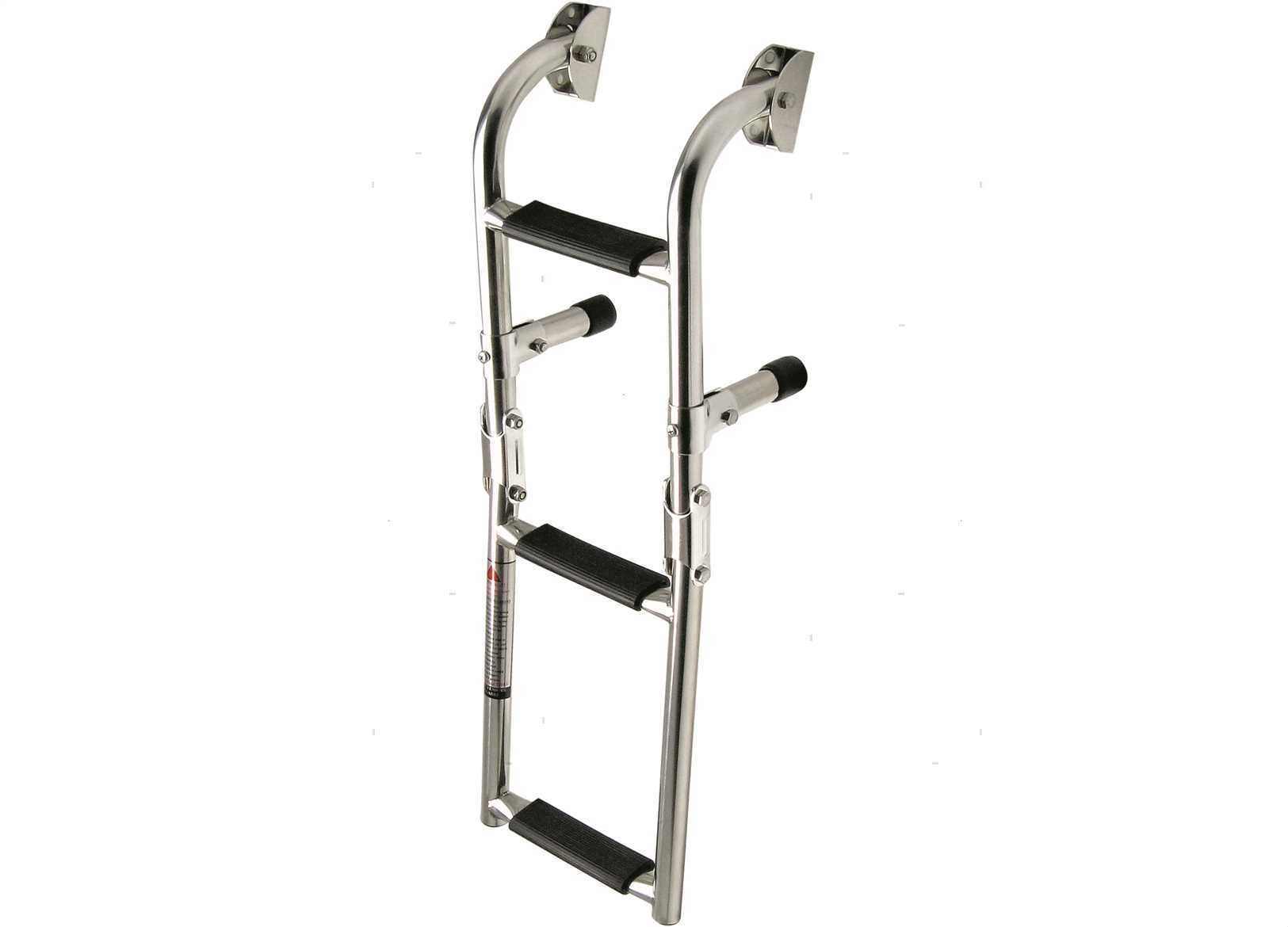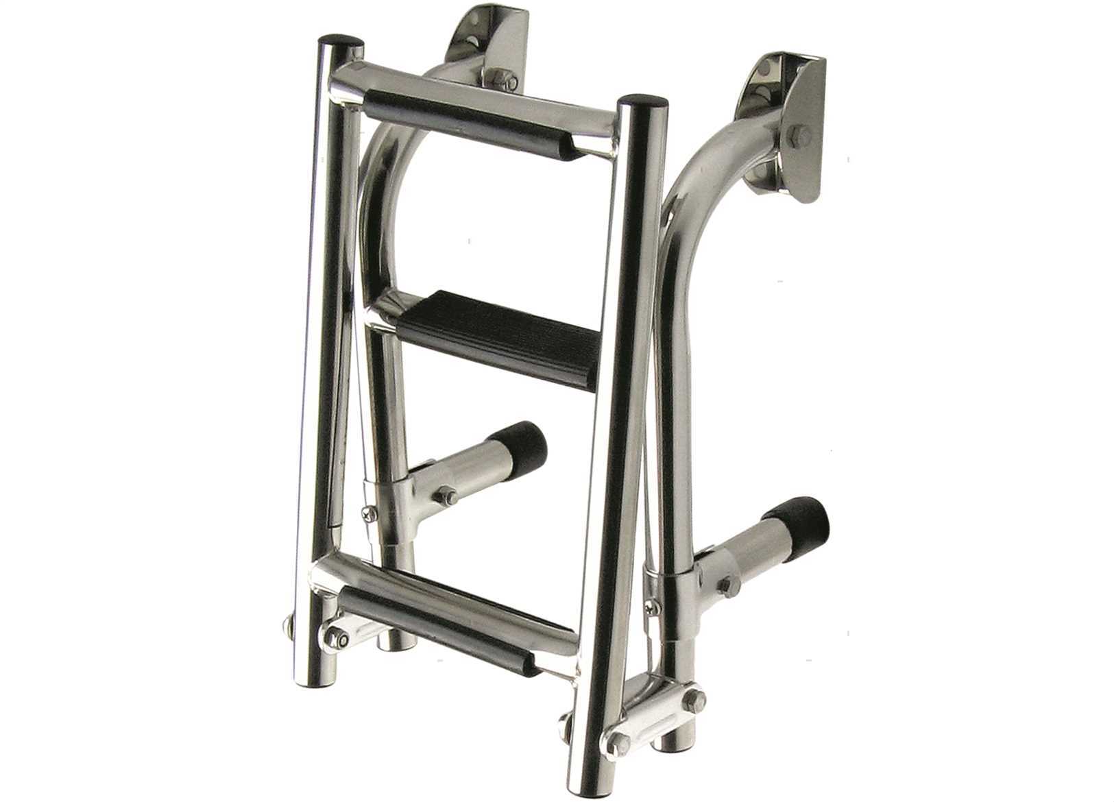 Scaletta pieghevole in Acciaio Inox con interasse stretto. Gradino rivestito con materiale composito antisdrucciolo. Si usa quando manca spazio sullo specchio di poppa.