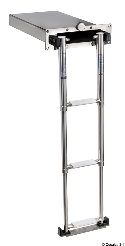 Scaletta telescopica ad incasso compatta da 3 gradini + box da incorporare nello spessore della plancetta. Le sue dimensioni ridotte la rendono ideale per le imbarcazioni più piccole.
