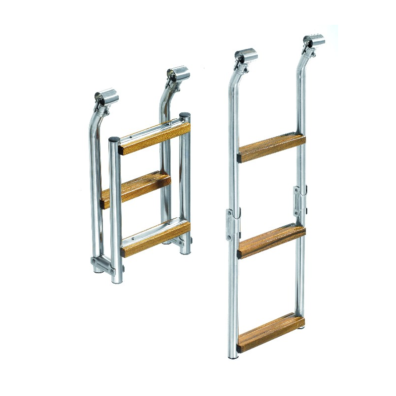 Scaletta in acciaio inox Ø mm. 25pieghevole, 3 gradini,in legno marino,lung. mm. 730x230 per tutti i tipi diplancette. (non adatta per 30.30438/9)