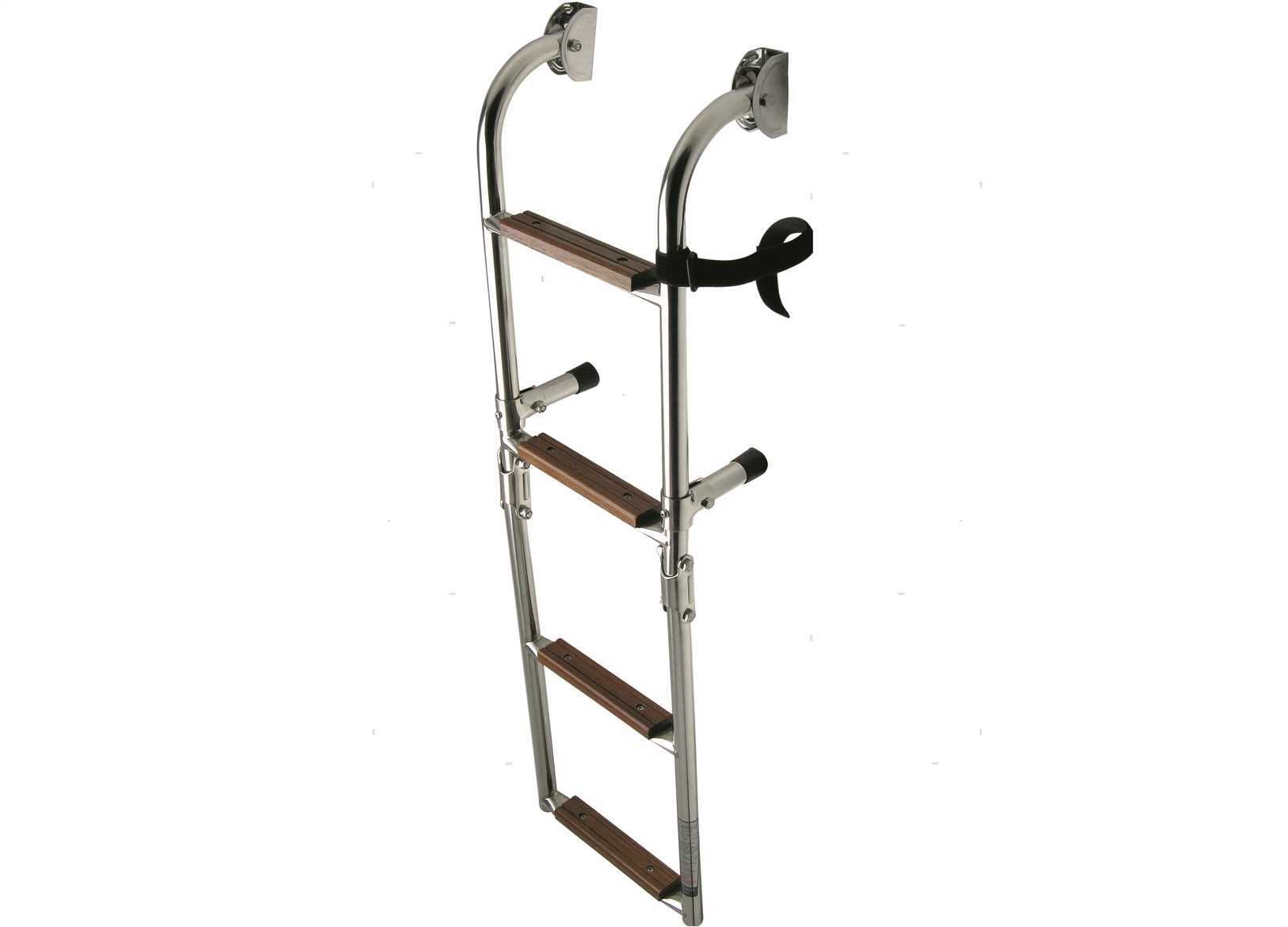 Scaletta pieghevole in Acciaio Inox con interasse standard. Battuta gradino rivestita in Legno trattato.