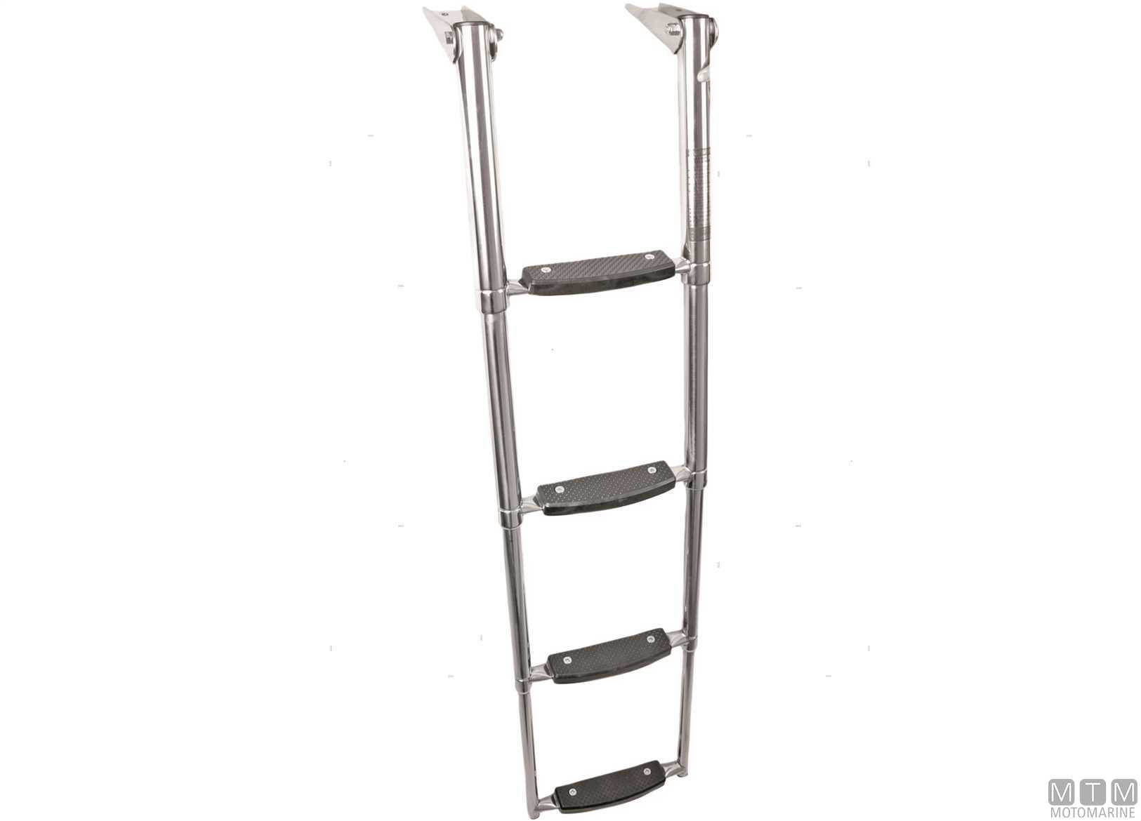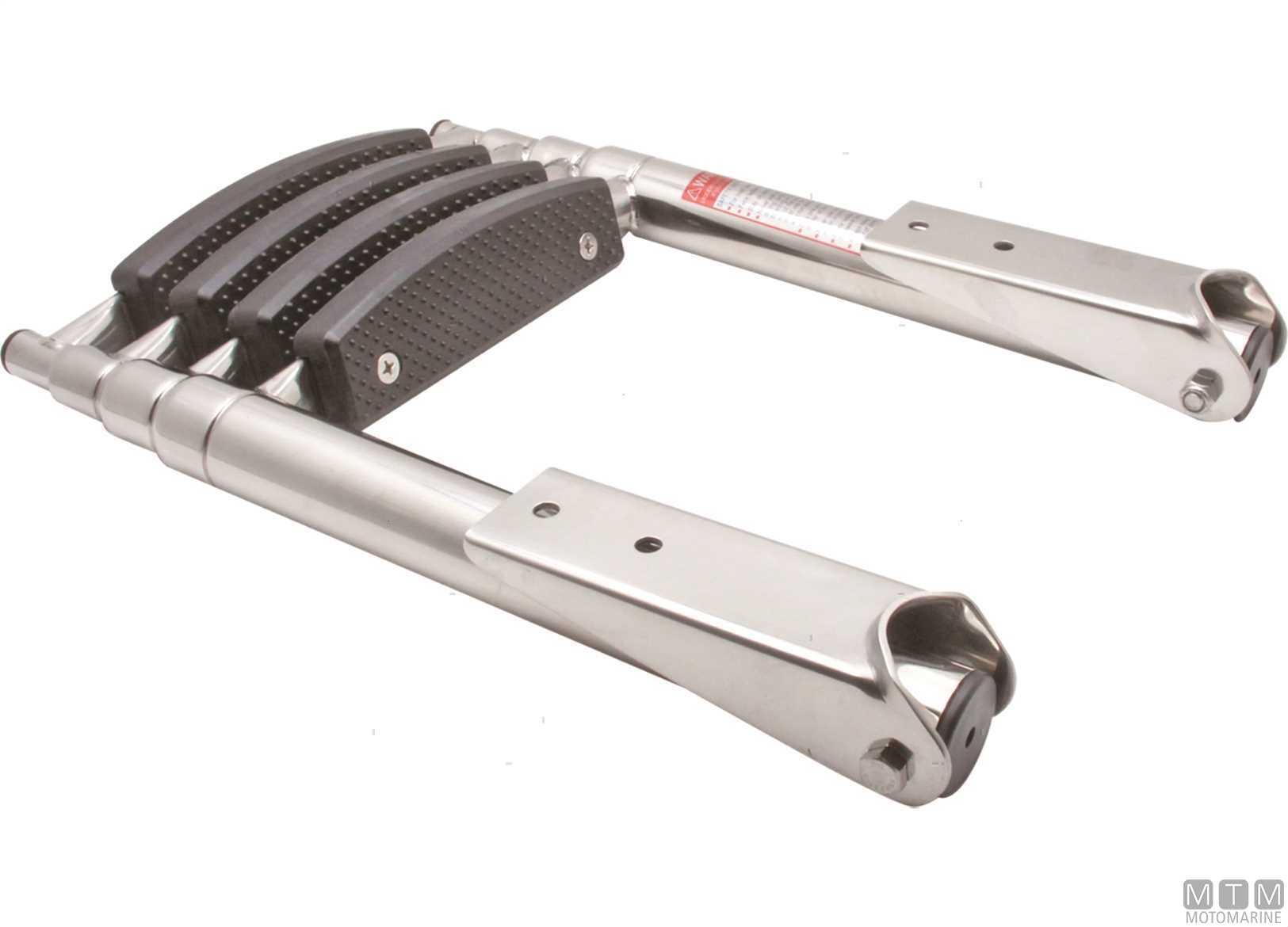 Scalette telescopiche ribaltabili in Acciaio Inox con gradini larghi per una comoda risalita. ↵ Montaggio su plance e plancette.