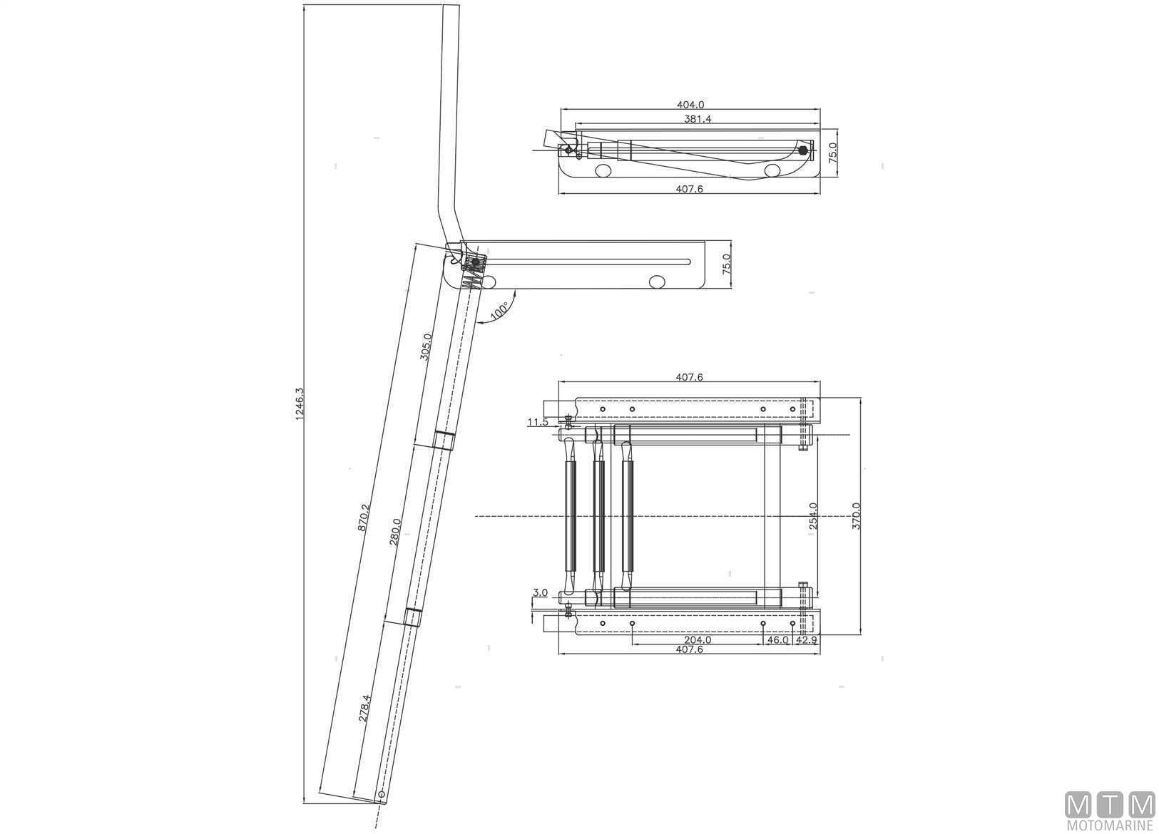 Scaletta pieghevole,Inox 316,per plancia stretta,gradini 2+3 ,180⁰