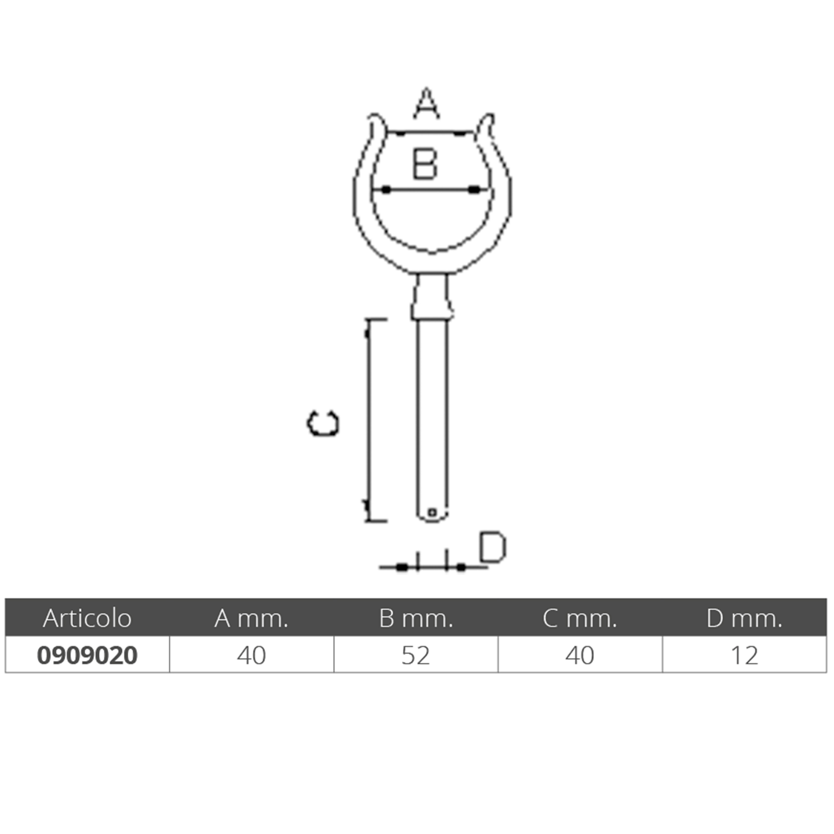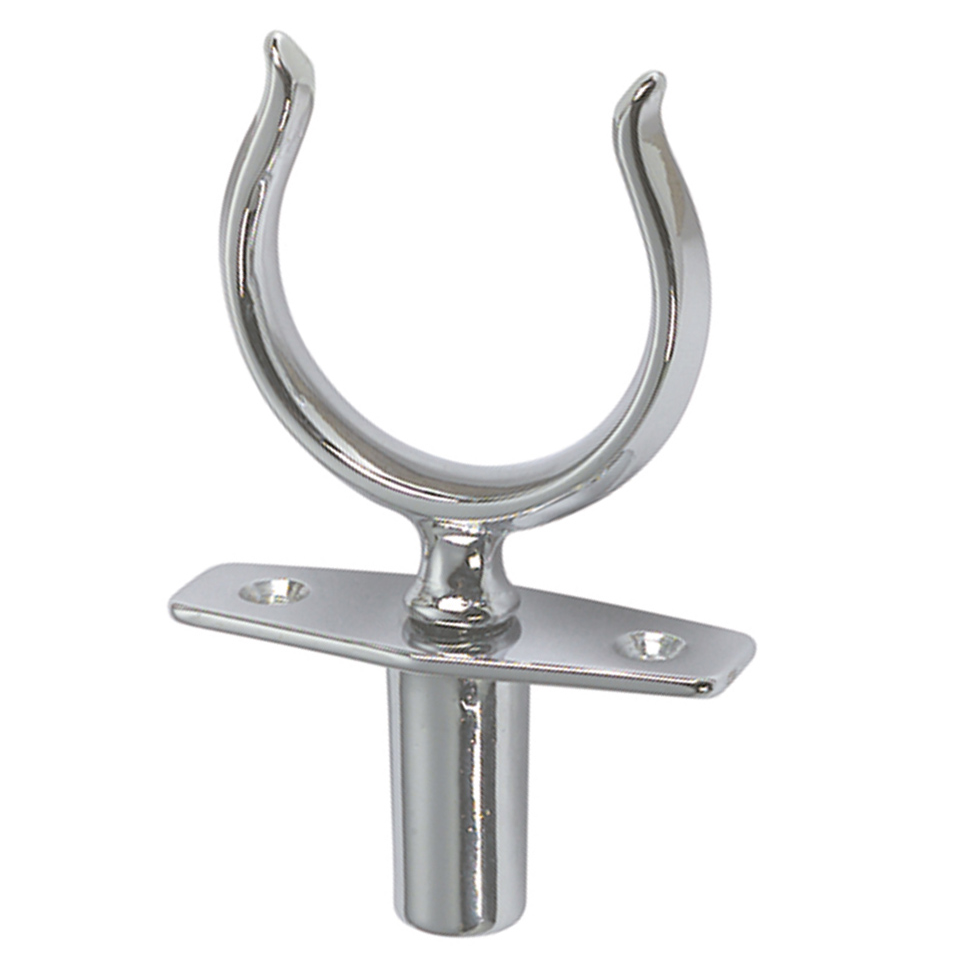 Scalmo ottone cromato completo di boccola cieca che si innesta a baionetta, apertura mm. 52, gambo Ø mm. 14.