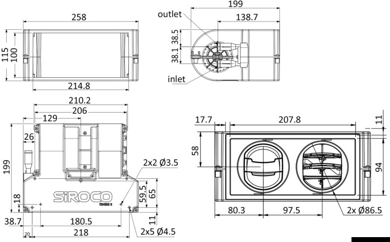 Scambiatori di calore con ventola attiva integrata per riscaldatori a liquido Autoterm Flow. Ricevono l'acqua generata dalla caldaia tipo 50.261.12 - 50.262.12/24 e distribuiscono aria calda. Per le versioni senza interruttore integrato si può collegare un qualsiasi termostato e/o interruttore con una o due velocità (tipo 50.266.30).