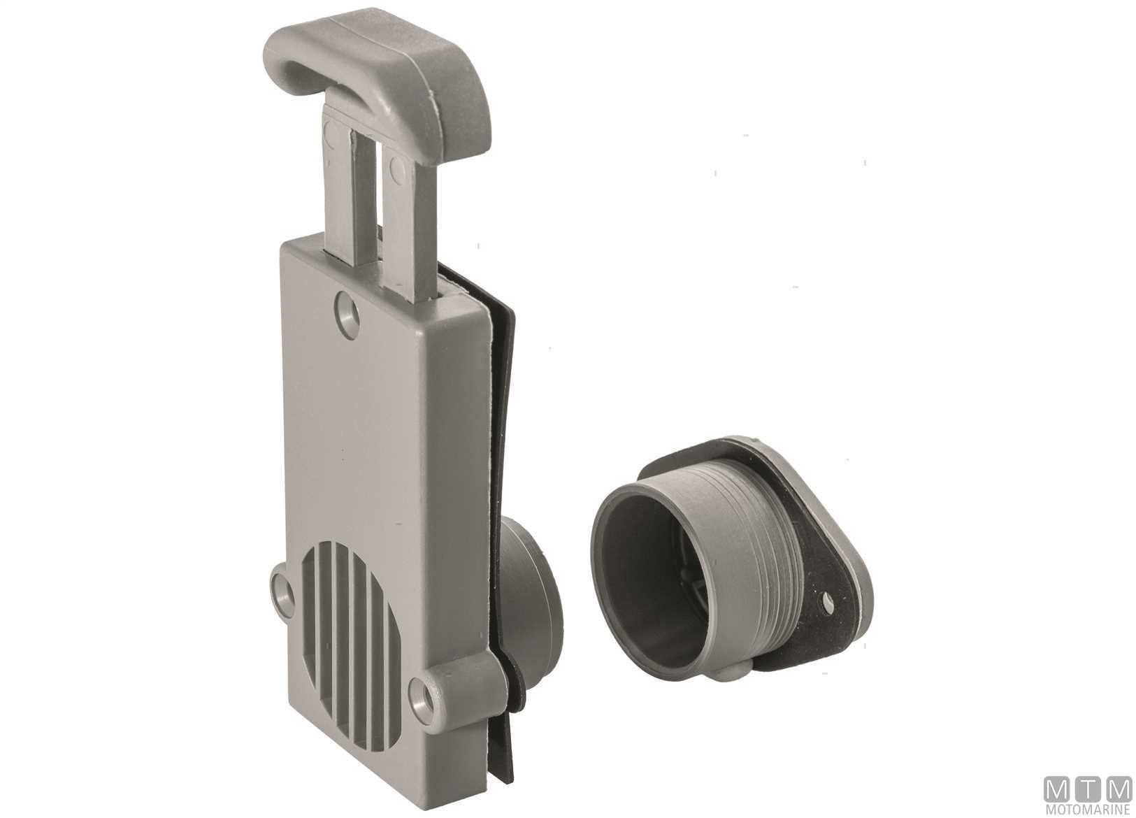 Scarico telescopico con membrana di non ritorno e saracinesca. In Nylon rinforzato, adatto a specchi di poppa di vari spessori.