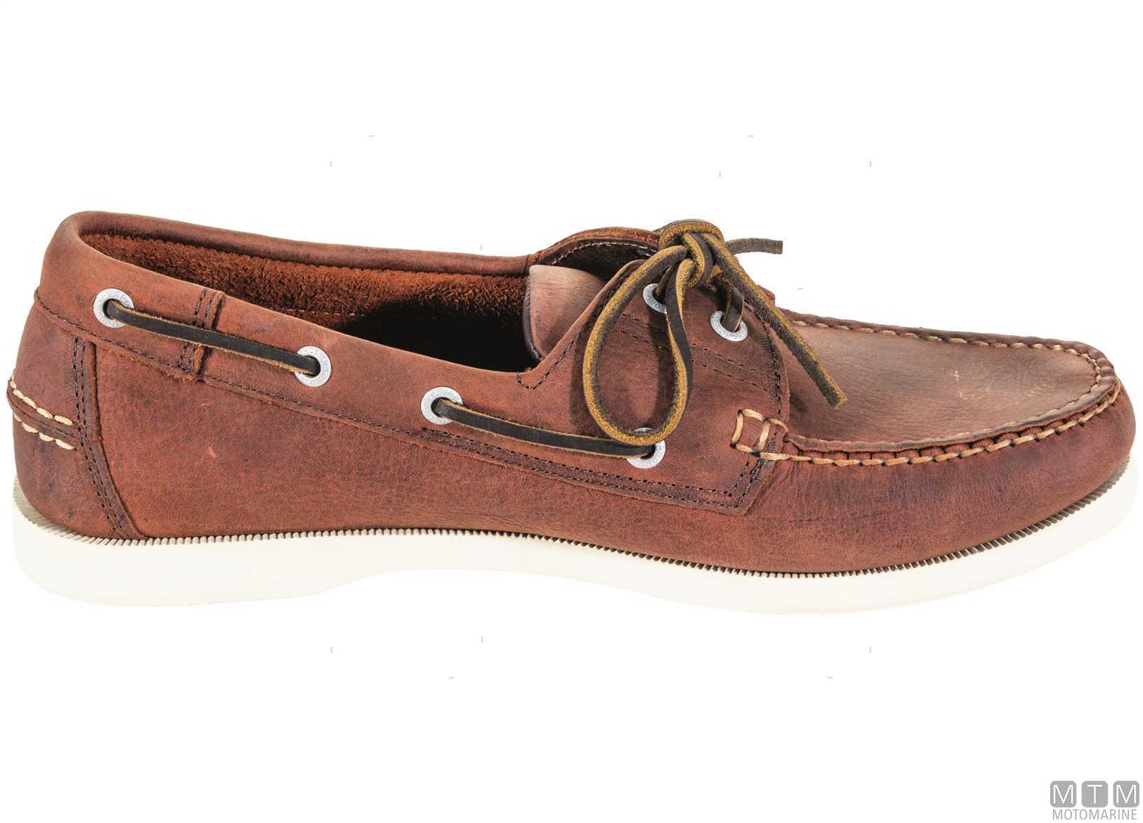 Mocassino Maine Russet in pelle marina.↵Suola in gomma bianca antiscivolo e antitraccia.↵Laccio in cuoio grezzo, occhielli antiruggine e tallone imbottito in EVA.