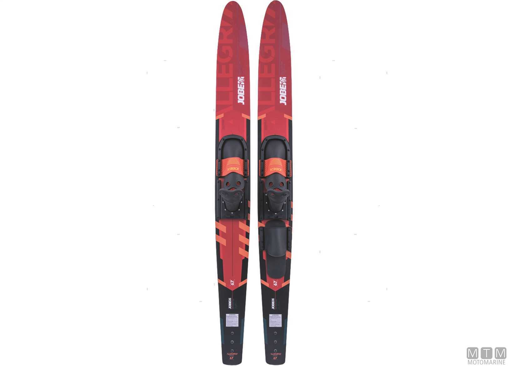 Sci d'acqua Jobe progettati con la giusta combinazione tra prestazioni e manovrabilità. Costruiti con struttura ad iniezione di fibra e rinforzi metallici ad asta per una maggiore rigidità e rifiniti con strato lucido protettivo. Completi con attacchi rinforzati regolabili da 36 a 47 e pinna ad alta visibilità. La versione package contiene in più la borsa per contenere gli sci, 18 m corda da traino, giubbetto di galleggiamento universale e bandiera di segnalazione per acqua sport.