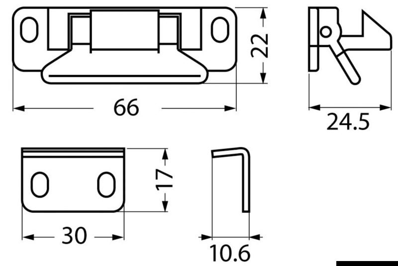 In poliammide (PA). Per antine senza pomoli o maniglie.