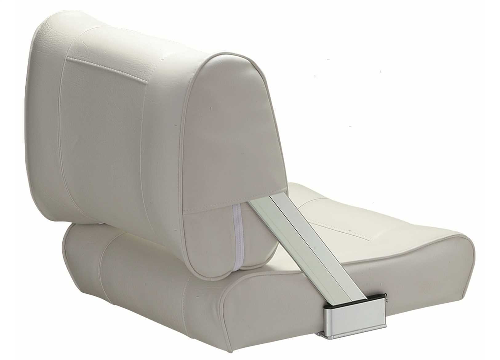 Sedile imbottito, rivestito in Skay marino. Lo schienale può essere posizionato fronte o retro, permettendo così una doppia posizione di guida e di lavoro.