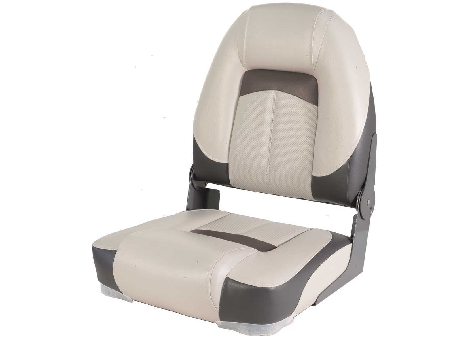 Sedile pieghevole imbottito rivestito in resistente Skay marino. Scocca in plastica caricata e cerniere in Alluminio anti-corrosione. Design confortevole e seduta morbida completa di cuscinetto da appoggio.