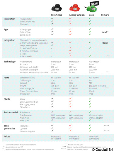 Collegabile a sistemi di controllo e strumenti analogici come KUS, VDO, WEMA, Faria (10-190 Ohm, 240-33 Ohm, 4-20 mA e 0-5 V). Inoltre, ci sono due singole uscite on/off per segnalare quando il serbatoio è vuoto e pieno.