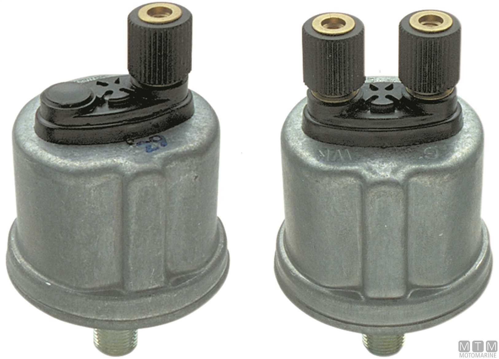 Sensori trasmettitori di pressione olio VDO compatibili per circuiti 12/24V. Impedenza standard VDO 10-184 Ohm tranne 2301135 con 5-90 Ohm. Diametro: 46 mm. Altezza totale senza filetto e senza poli: 40 mm.