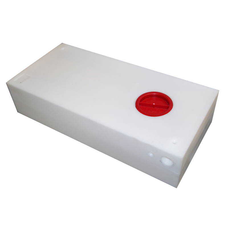 Serbatoio in polietilene atossico rigido per acqua completo di tappo ispezione Ø mm. 140. Fori ciechi filettati da 3/8 - 1’ 1/4. Dim.cm.80x37x18h