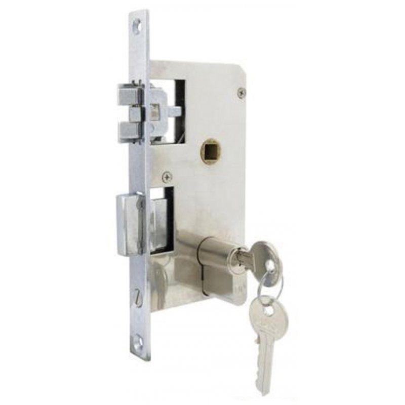 Serratura da Incasso per Porte Scorrevoli in Ottone Cromato 83x17mm