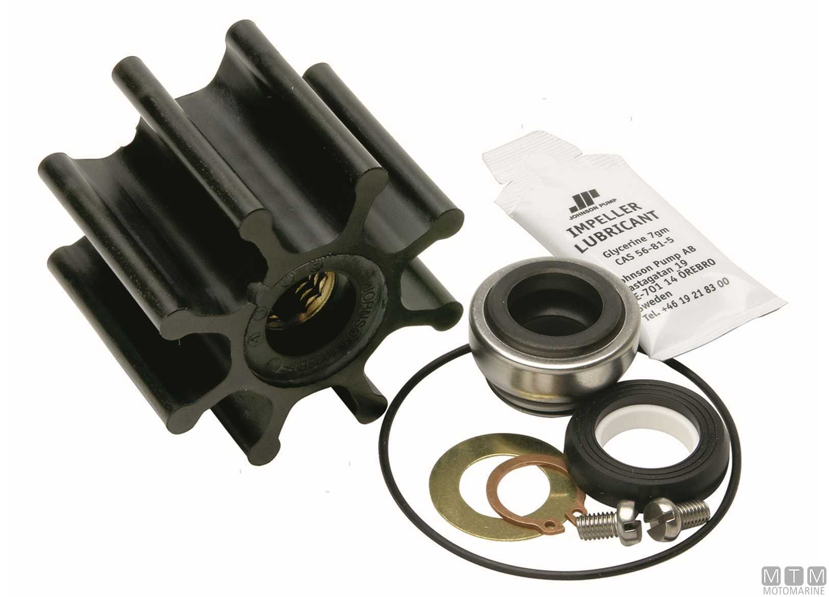 Service Kit per la manutenzione delle pompe di raffreddamento Johnson. Contiene girante, grasso lubrificante, istruzioni e altri ricambi a seconda del kit.