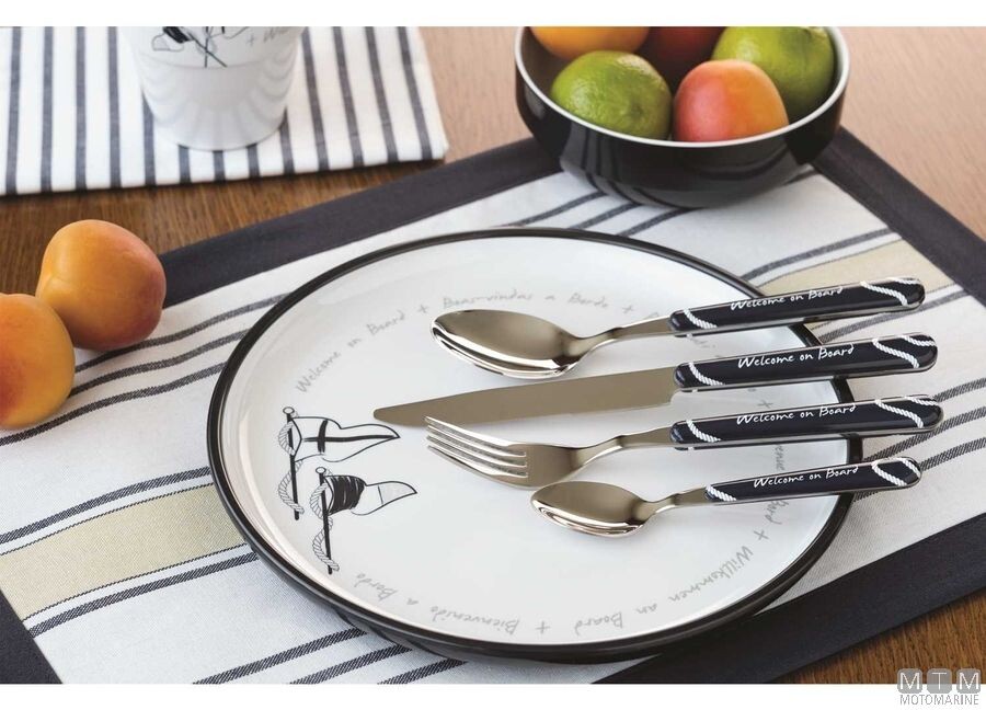 Servizio posate in Acciaio Inox con decoro Welcome On Board in confezione da 6 x 4 pezzi.