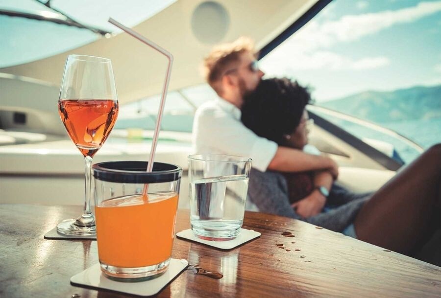 Eleganti calici da vino Silwy in cristallo di alta qualità con pratici magneti integrati sul fondo che ne rendono sicuro l’appoggio anche quando il mare è mosso. Rapporto di tenuta perfetto tra sottobicchiere e bicchiere. I sottobicchieri metallici in nano-gel sono rimovibili, durevoli, non lasciano residui e aderiscono a tutte le superfici. Forniti in set da 2 bicchieri, compresi di sottobicchieri in nano-gel metallizzati.