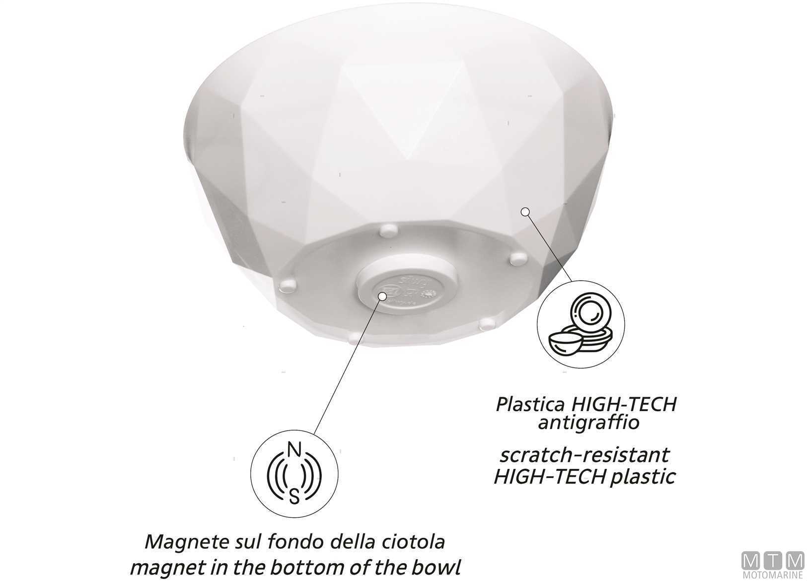 Set di due ciotole e set di due piatti in plastica infrangibile Hightech con magnete integrato sul fondo per una perfetta adesione al tappetino metallico o al vassoio della linea Silwy. Lavabili in lavastoviglie (modalità ECO) sono perfettamente impilabili e non creano rumori di sfregamento.