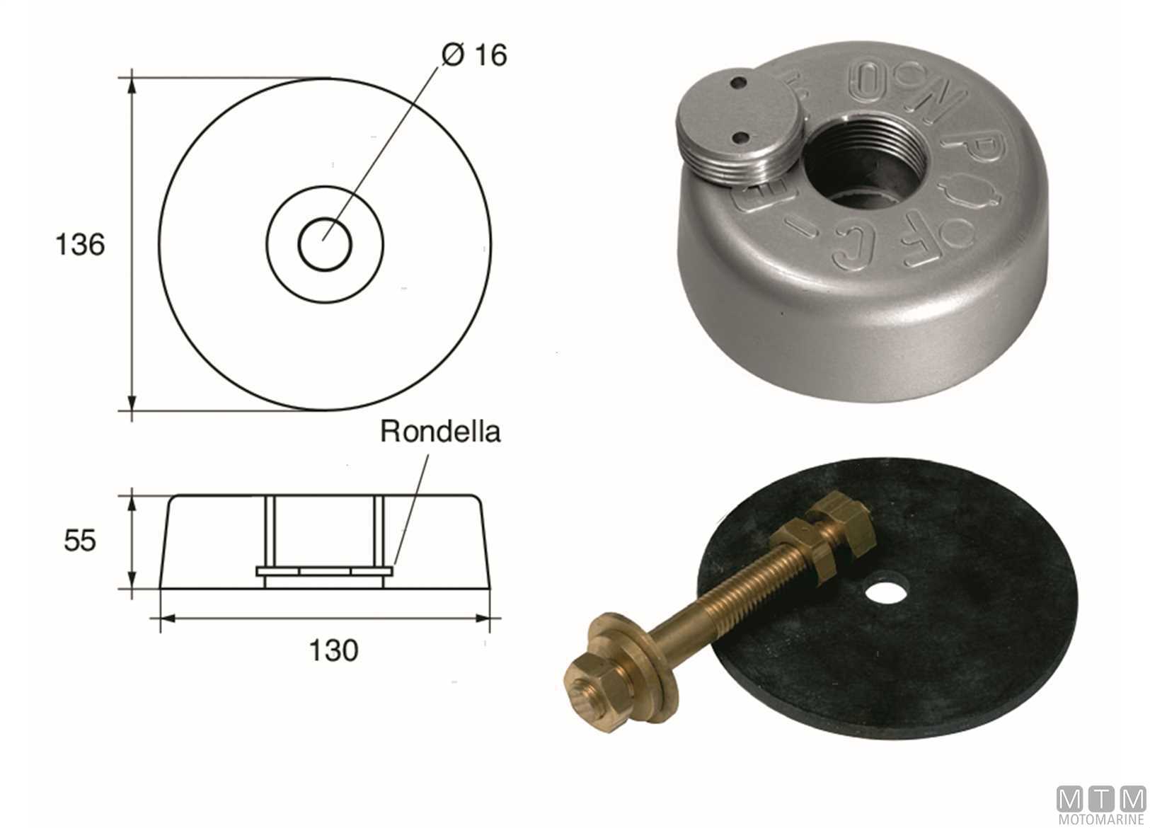 Set anodo flangia tonda thick d120mm zn