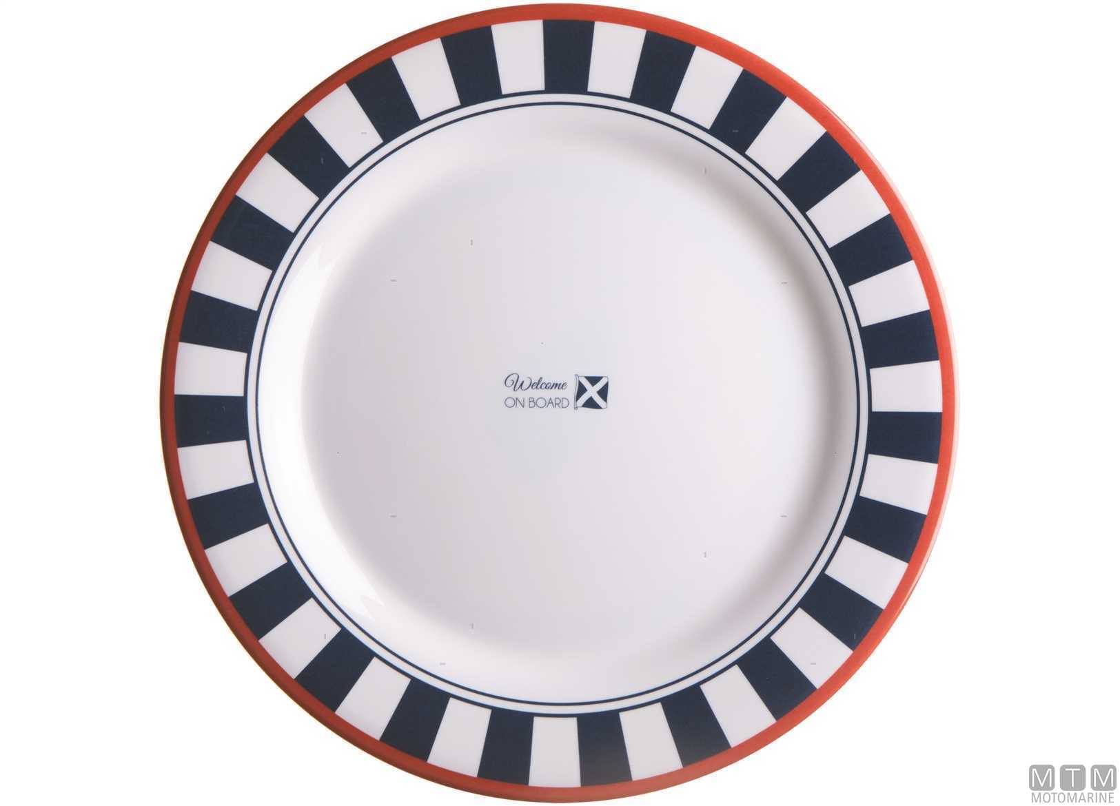 Piatto piano con decoro Venezia e base antiscivolo in confezione da 6 pezzi. In Melamina garantita 100% per uso alimentare. Lavabile in lavastoviglie, infrangibile e anti-macchia.