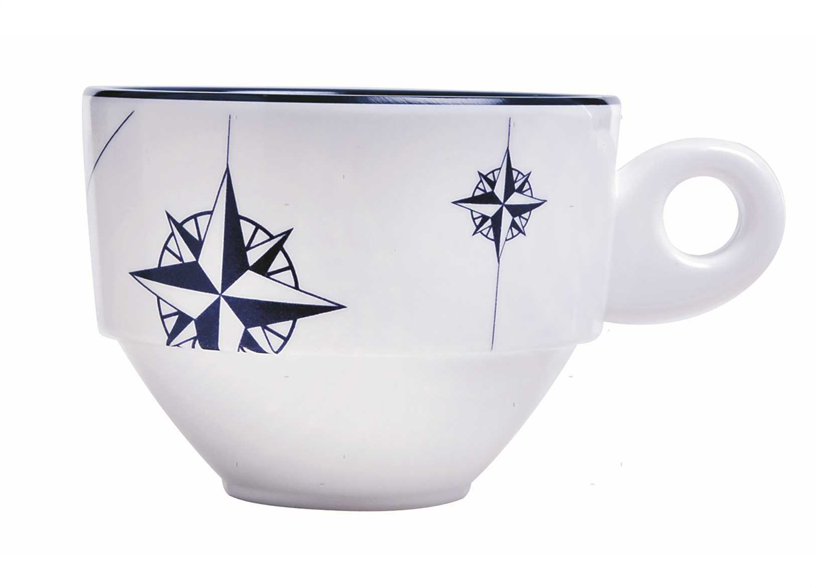 Tazzina da caffè con piattino con decoro Northwind in confezione da 6 pezzi. In Melamina garantita 100% per uso alimentare. Lavabile in lavastoviglie, infrangibile e anti-macchia.