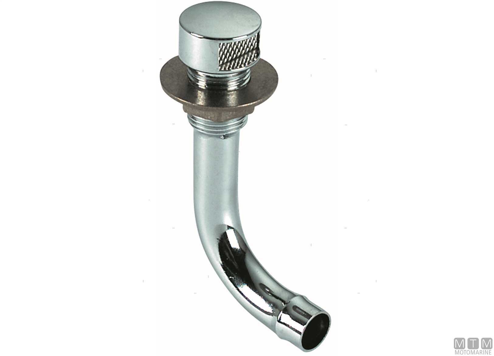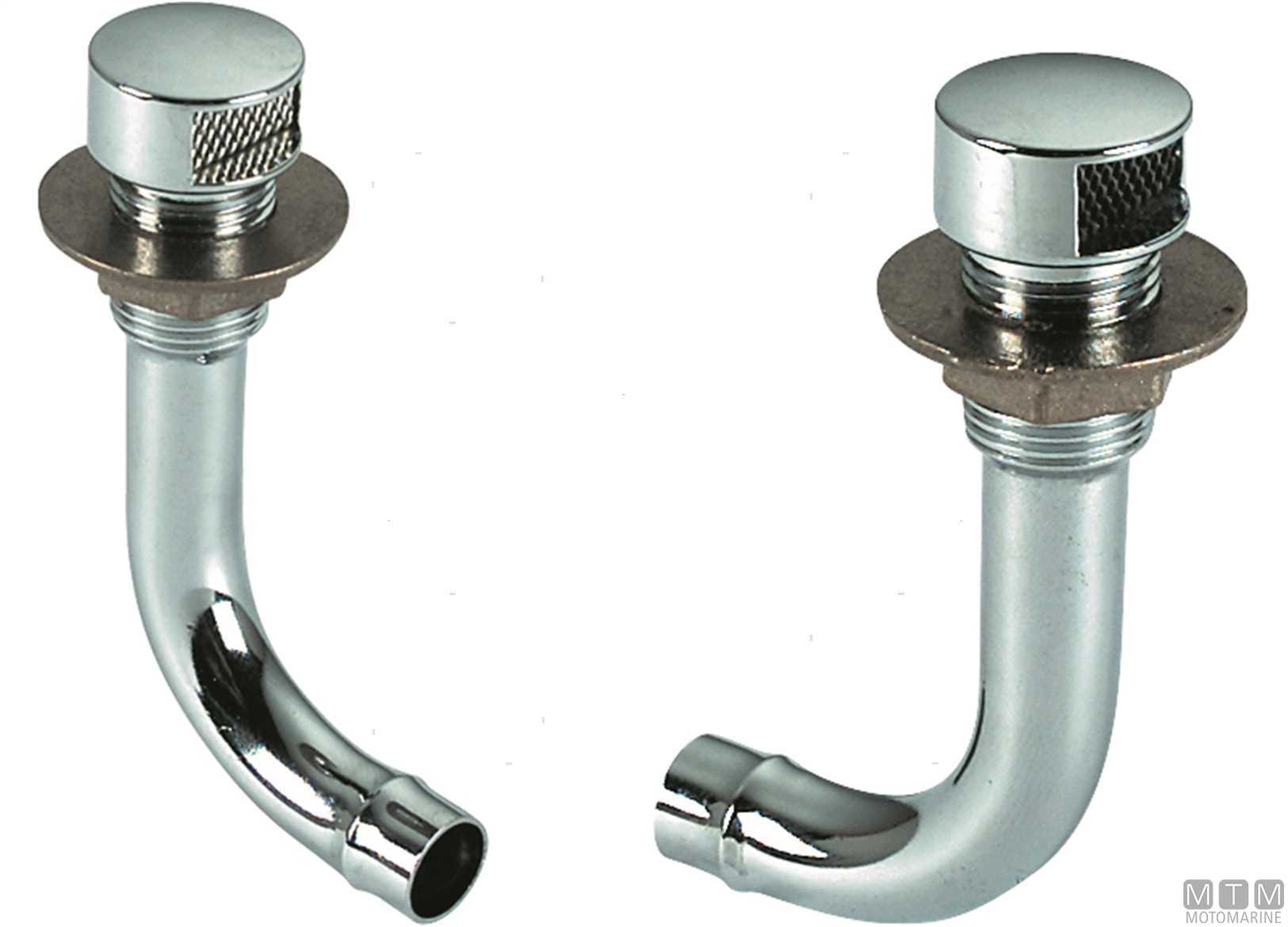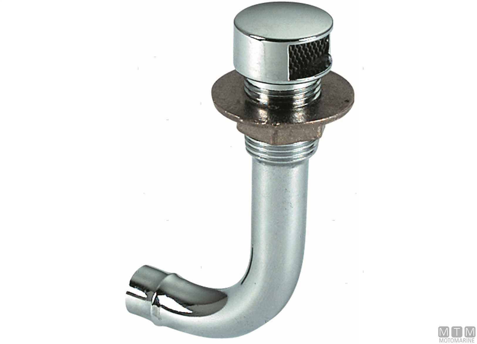 Sfiato con curva a 90° in Ottone Cromato per serbatoi. Difesa in rete Inox. ↵Conforme alle norme R.I.Na.