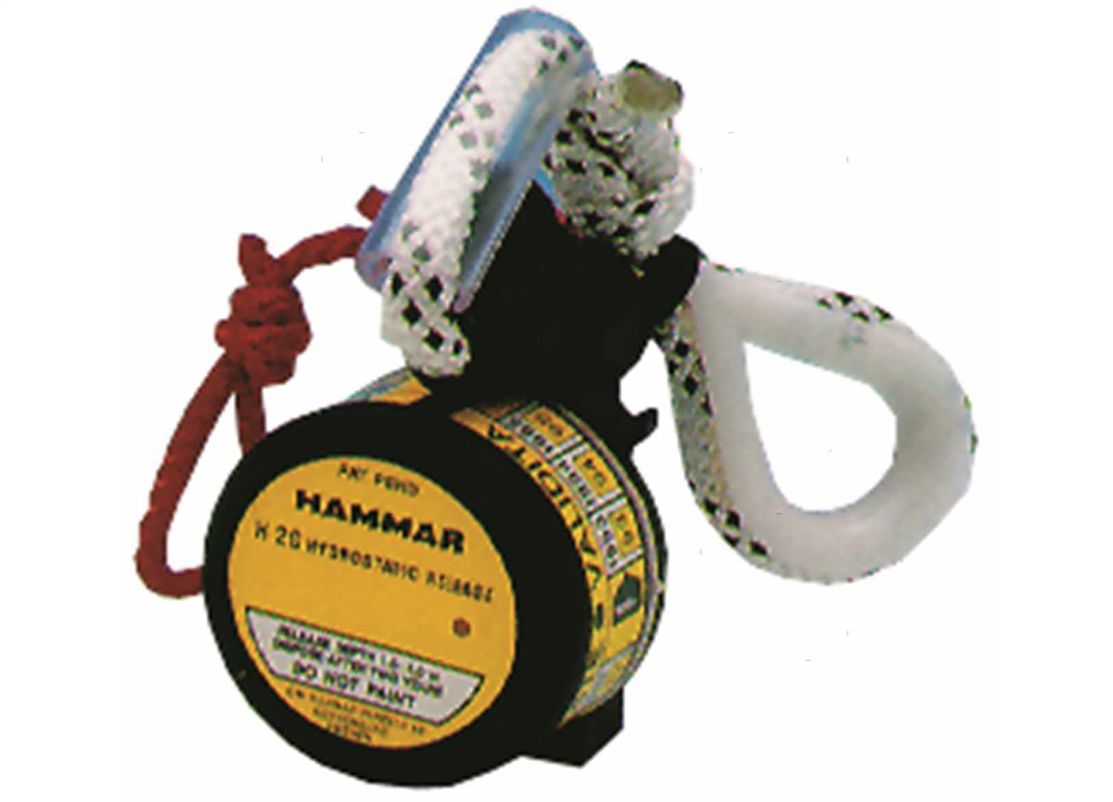 Sgancio idrostatico Hammar originale H20 R per zattere autogonfiabili. Certificazione SOLAS e ISO9001 Bureau Veritas.