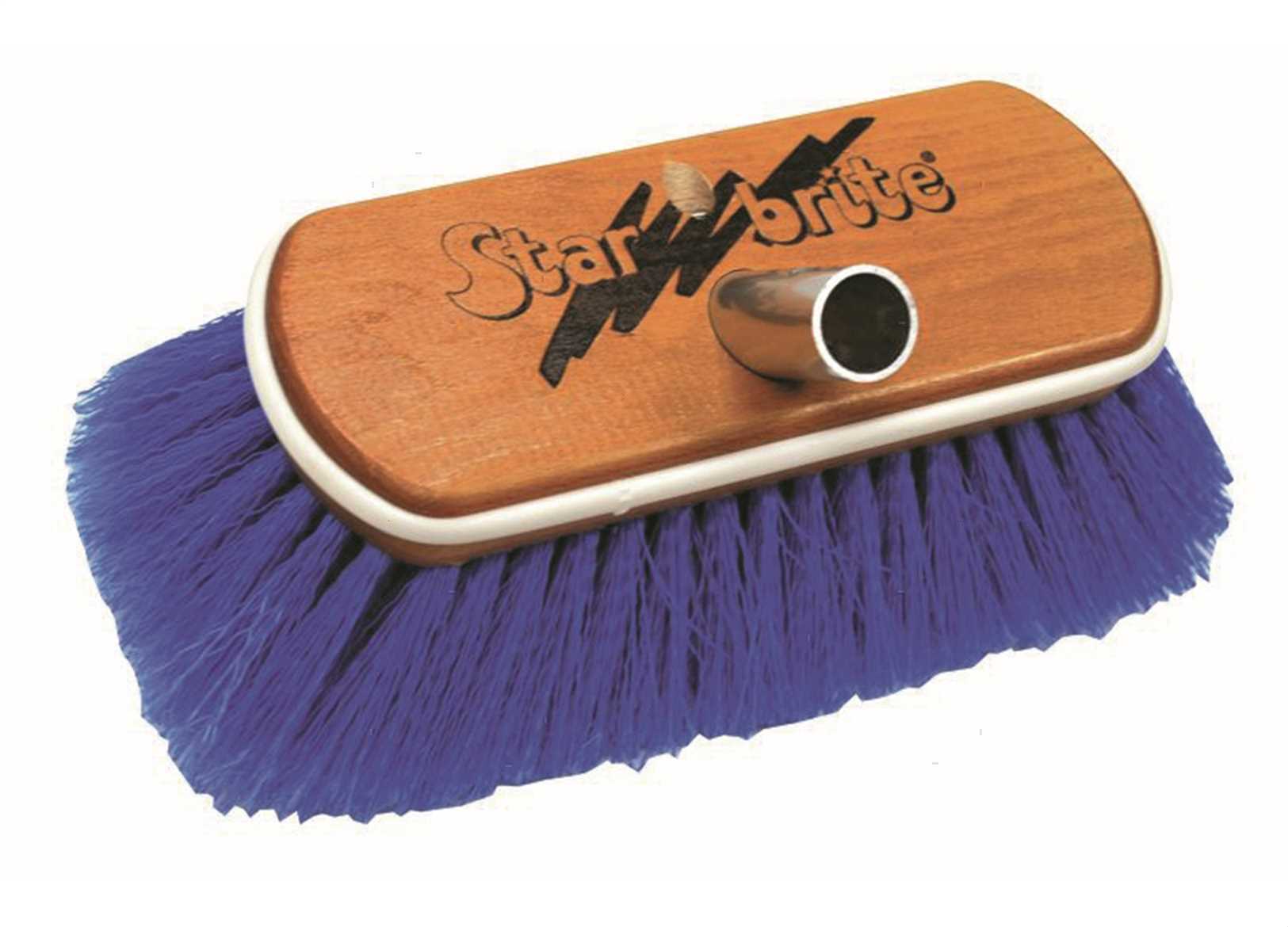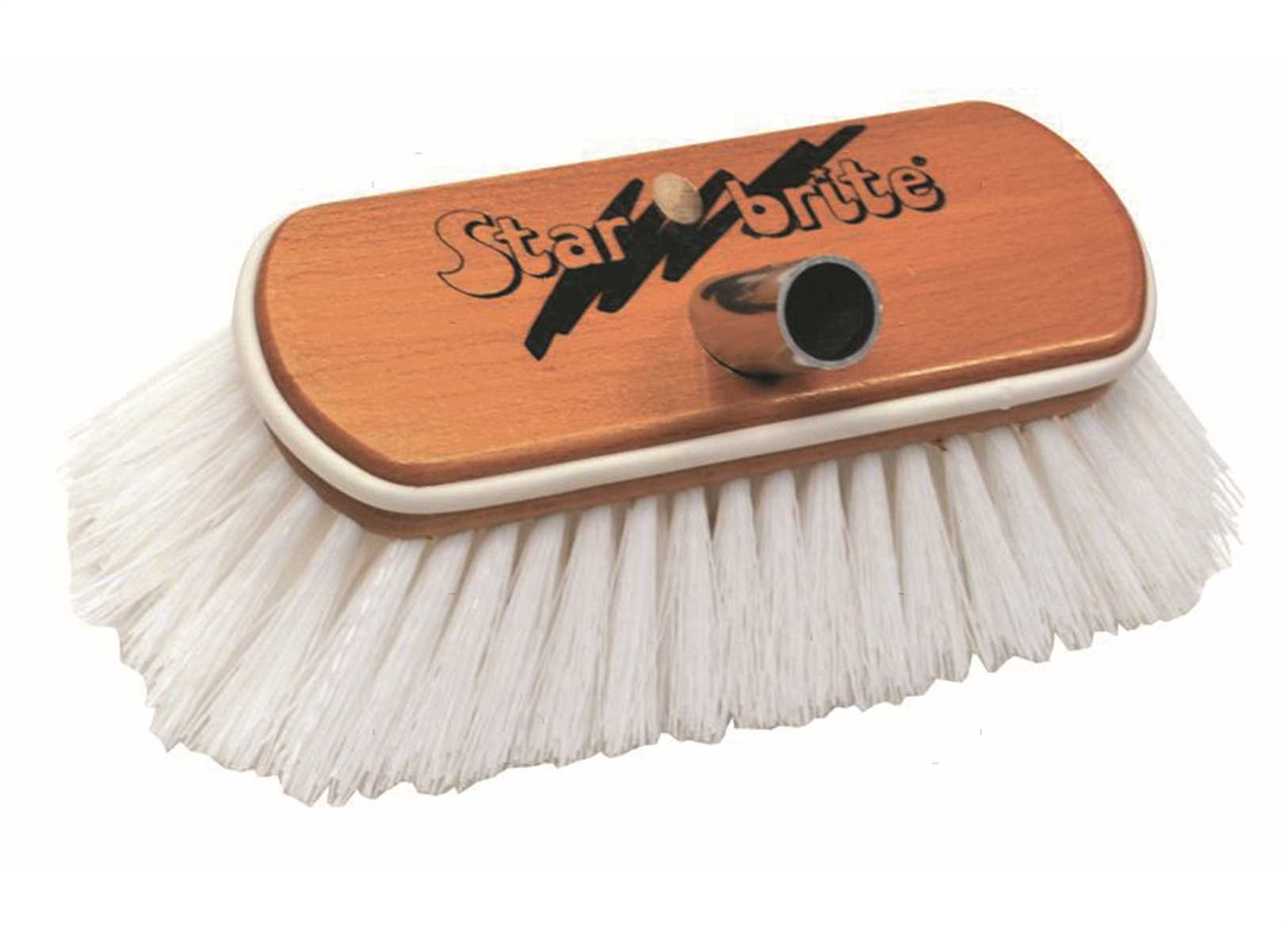 Spazzole in fibra Star-Prene con testa in legno sintetico e protezione paracolpi. ↵3 tipi di fibra con 3 colori diversi a seconda dell'uso: ↵Gialla - tipo morbido: trattiene l'acqua, ideale per il lavaggio di finestrature e pareti in VTR. ↵Blue - tipo medio: perfetta per la pulizia generale. ↵Bianca - tipo duro: ideale per il lavaggio di ponti, superfici ruvide e molto sporche. ↵Si adattano perfettamente a tutti i manici Star Brite.