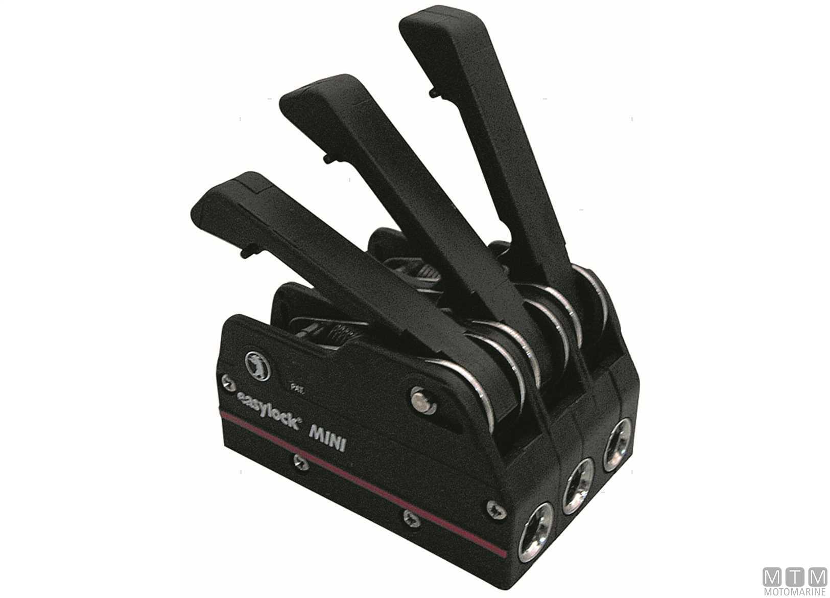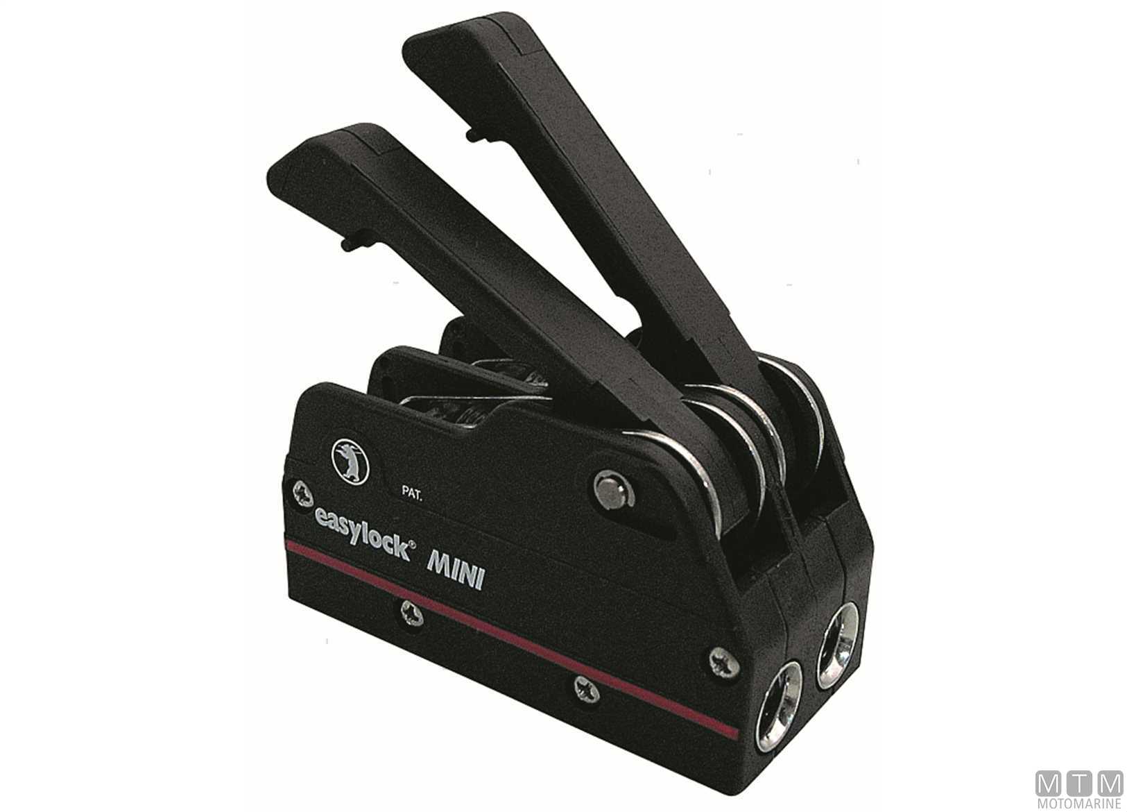 Stopper Easylock Mini permette di cazzare e lascare la scotta sotto carico. ↵Guance in Alluminio Anodizzato. ↵L 115 mm. Carico di lavoro 450 Kg.