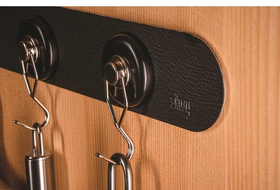 Striscia metallica con rivestimento in ecopelle per tazze e bicchieri magnetici Silwy. Grazie alla speciale anima metallica i bicchieri magnetici aderiscono con notevole tenuta e possono essere posti a testa in giù, diagonalmente, verticalmente od orizzontalmente. Rappresenta una soluzione elegante, innovativa e salvaspazio. Applicazione permanente e facile con lo strato adesivo 3M.