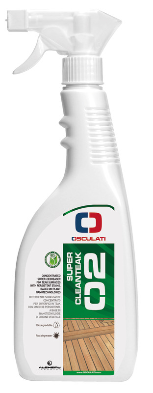 Detergente sgrassante concentrato a base di nanotecnologie di origine vegetale ideale per la pulizia delle superfici in teak interne ed esterne.