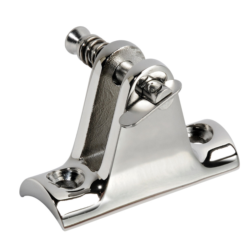Supporto a forcella base concava per tubo Ø da 20 a 25 mm e perno sfiabile con molla