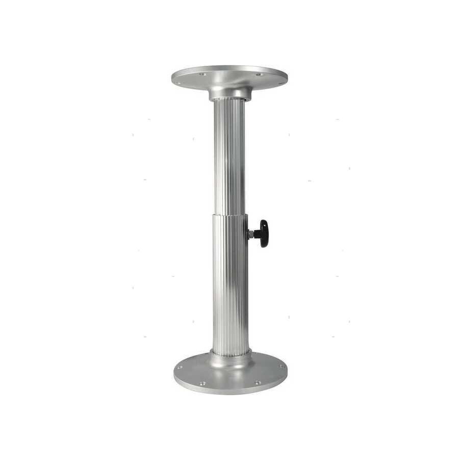 Supporto tavolo in Alluminio Anodizzato marino satinato con altezza regolabile manuale con perno. Diametro tubo 70 mm, diametro basi 230 mm.