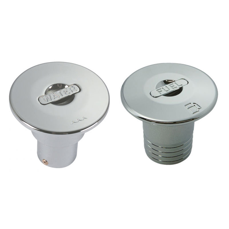 Tappo imbarco ottone cromato a filo con speciale apertura ascomparsa. Ingombro massimo Ø mm. 89