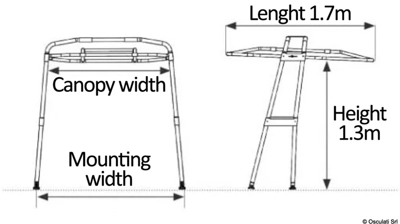 Il tessuto del Top è in poliestere ATLAS blu da 310 g/m2, impermeabile ed UV resistente.