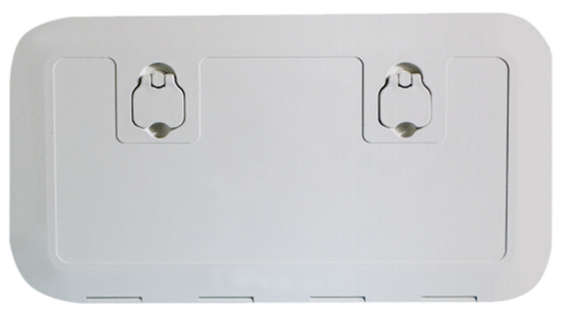 In ABS bianco. Coperchio completamente carenato, nasconde totalmente il telaio. La paratia frontale é ad incastro, pertanto la tasca può essere montata con apertura verso l’alto oppure verso il basso.